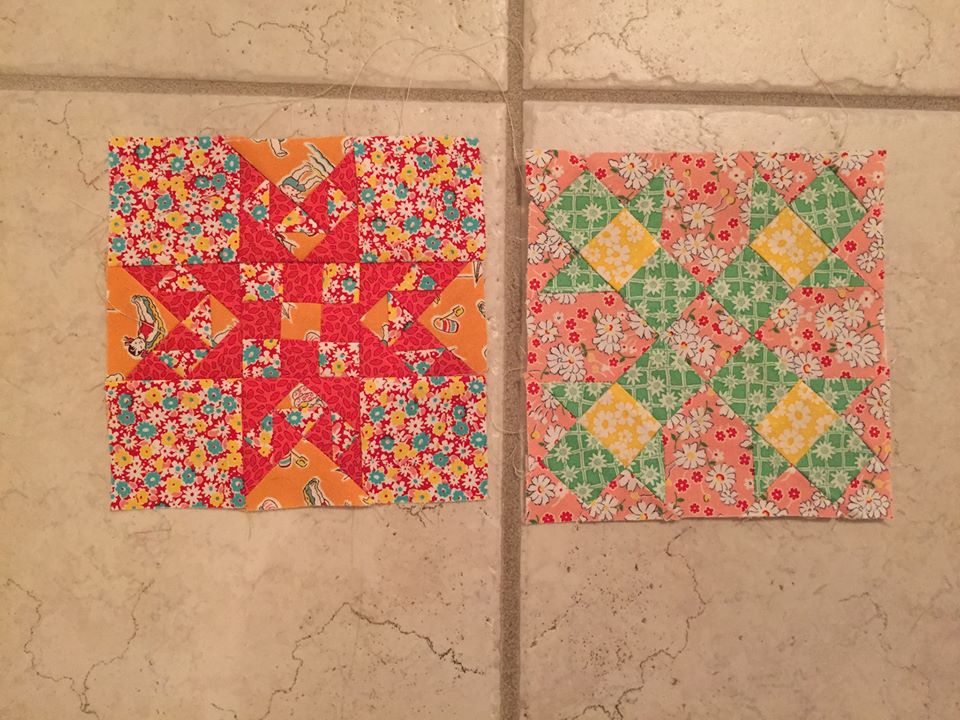Here's a close up of the mini blocks I just finished making. I think it's nice to throw in a little something different. I'm just trying to make the quilt more fun. Also, I got to use some smaller scraps when making these little blocks. It's amazing the amount of fabric I needed to make those larger blocks. My scrap pile still doesn't look like any smaller, unfortunately.